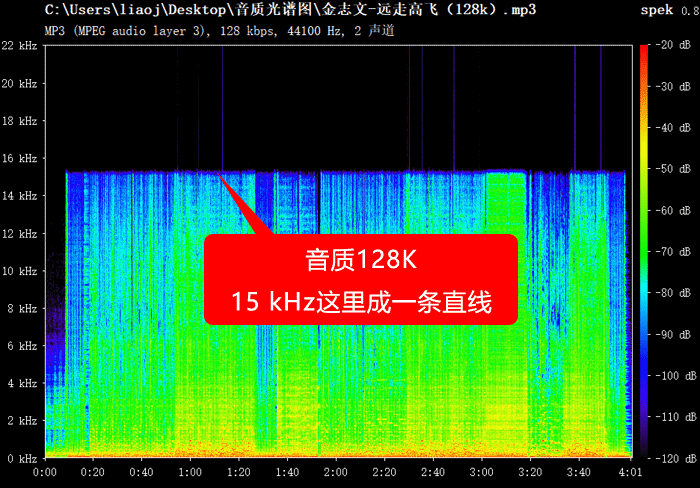 长期以来,很多人对于一首音乐音质好坏的判断完全取决于舞曲的比特率,即查看音频文件是192k、256k还是320k(MP3文件-属性-详细信息中的比特率),但实际上这一参数并不能真实的反映一首音乐的音质,是一个可以做假的数据,并不能完全代表一首歌曲真实音质,比如用千千静听等软件,就可以把一首64Kbps的音乐转为320Kbps的,但转换前的和转换后的音质是一样的,音质并未得到真正提升,下面教大家使用专业频谱分析器(spek音频分析器)来查看音乐的真实音质: